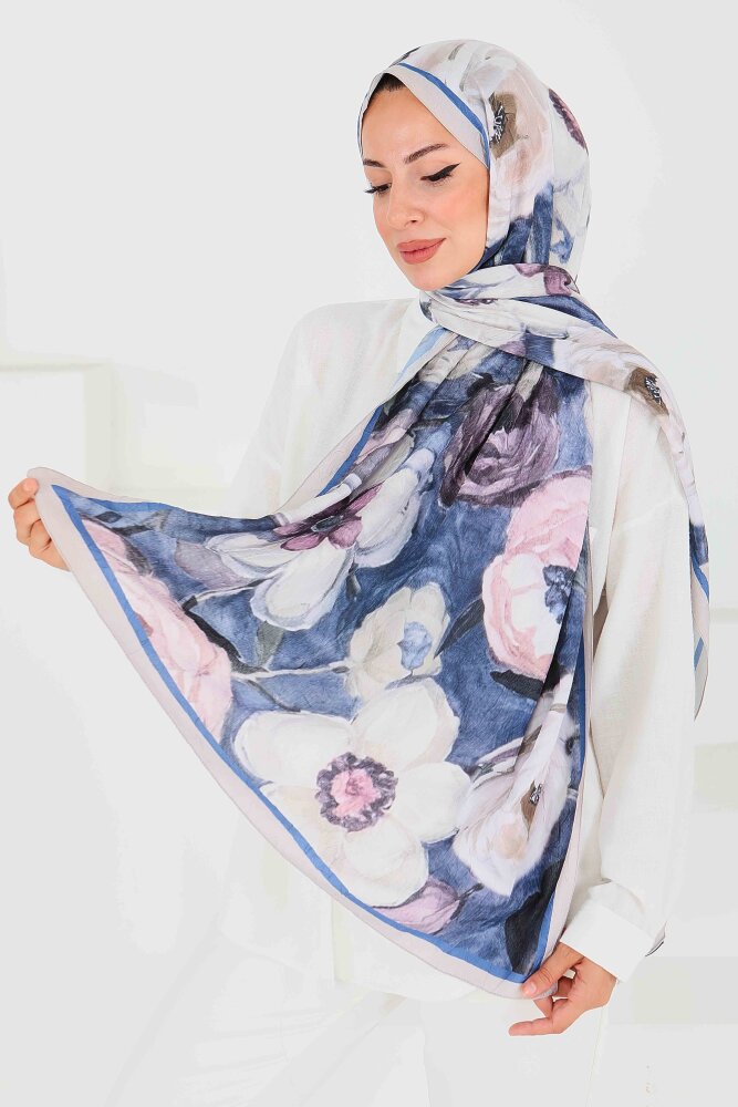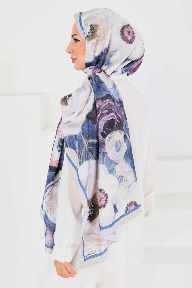 Desenli Bambu Kare Şal Saks - 27523