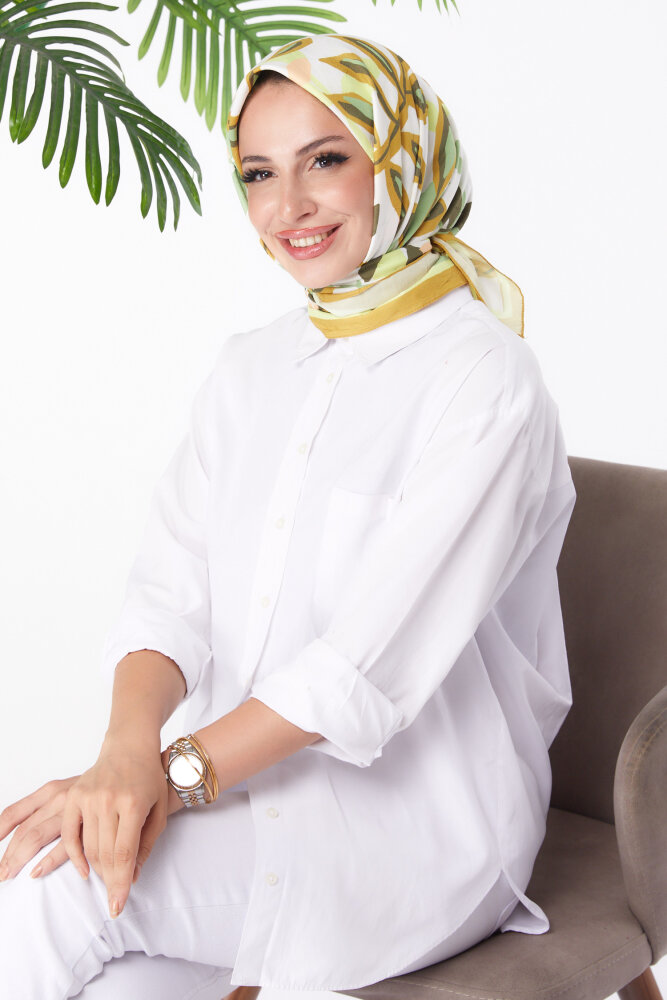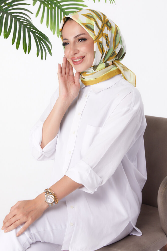 Desenli Eşarp Yağ Yeşili - 26159
