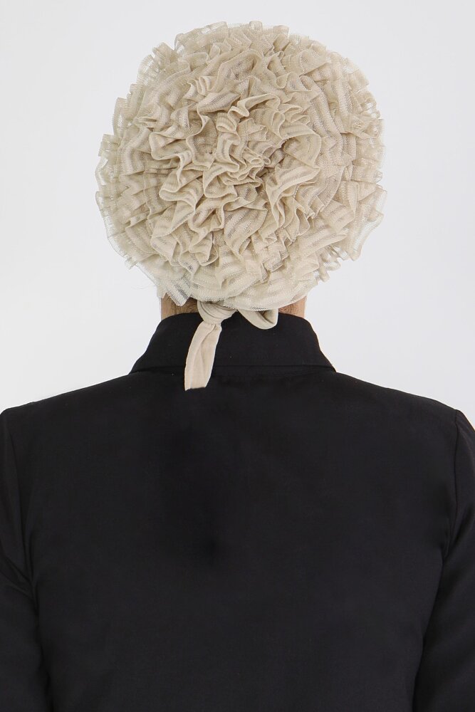 Dikişsiz Fırfırlı Bone Bej - 27618