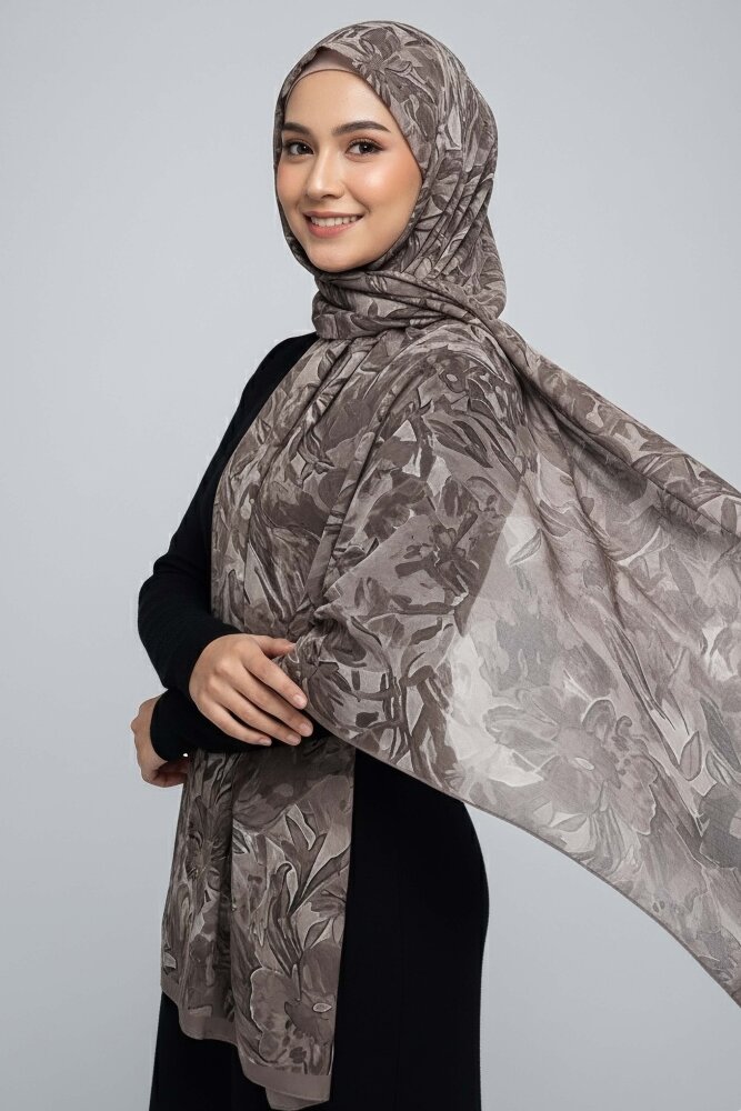 Elegance Flora Serisi Bambu Crash Şal Vizon - 28003-VIZON