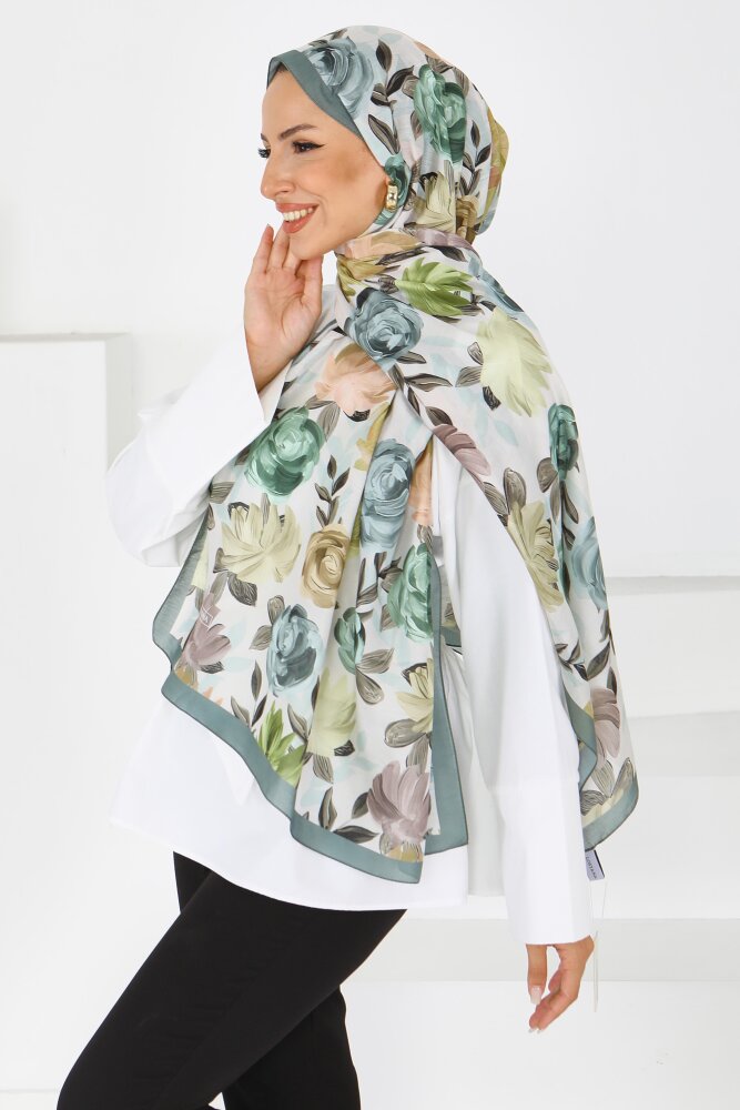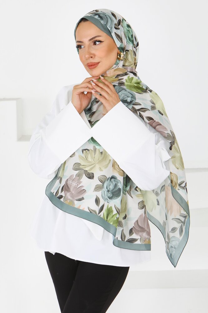 Flower Serisi Rose Lily Desenli Şal Haki - 27594