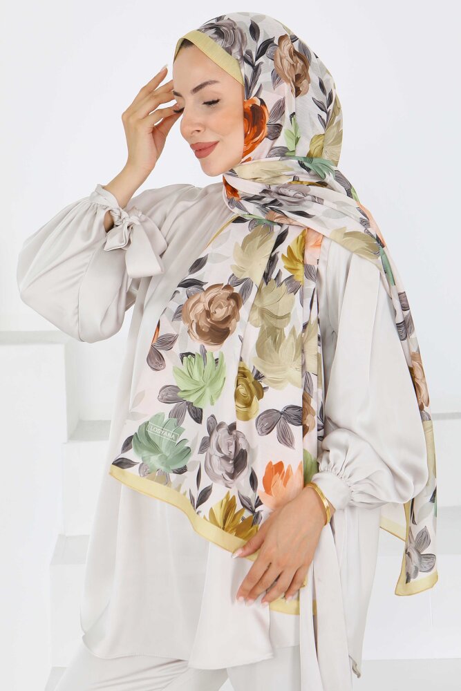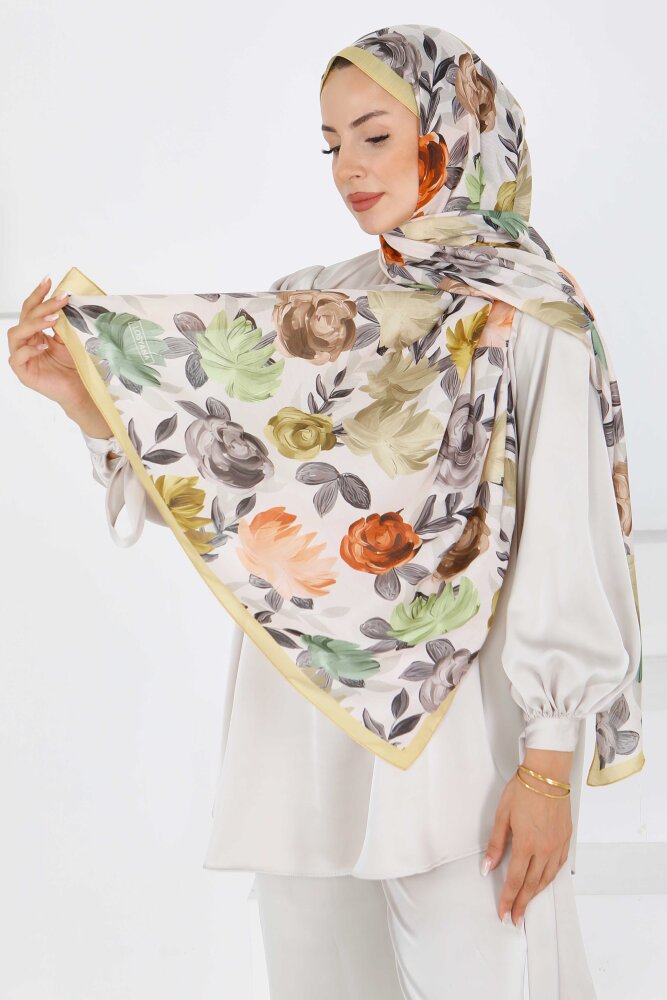 Flower Serisi Rose Lily Desenli Şal Hardal - 27594