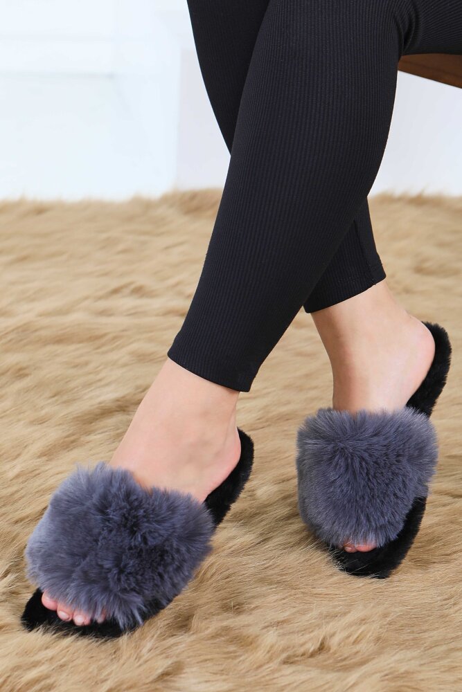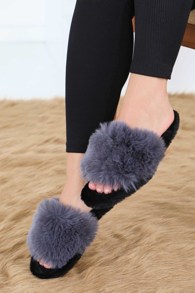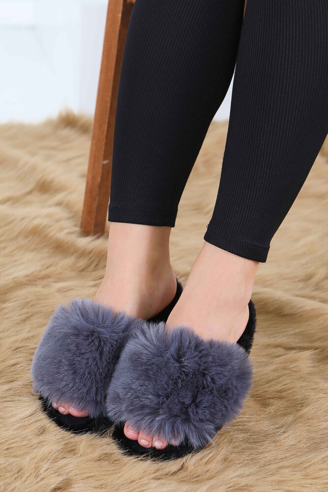 Kadın Antrasit Ponponlu Ev Terliği - 27782-ANTRASIT
