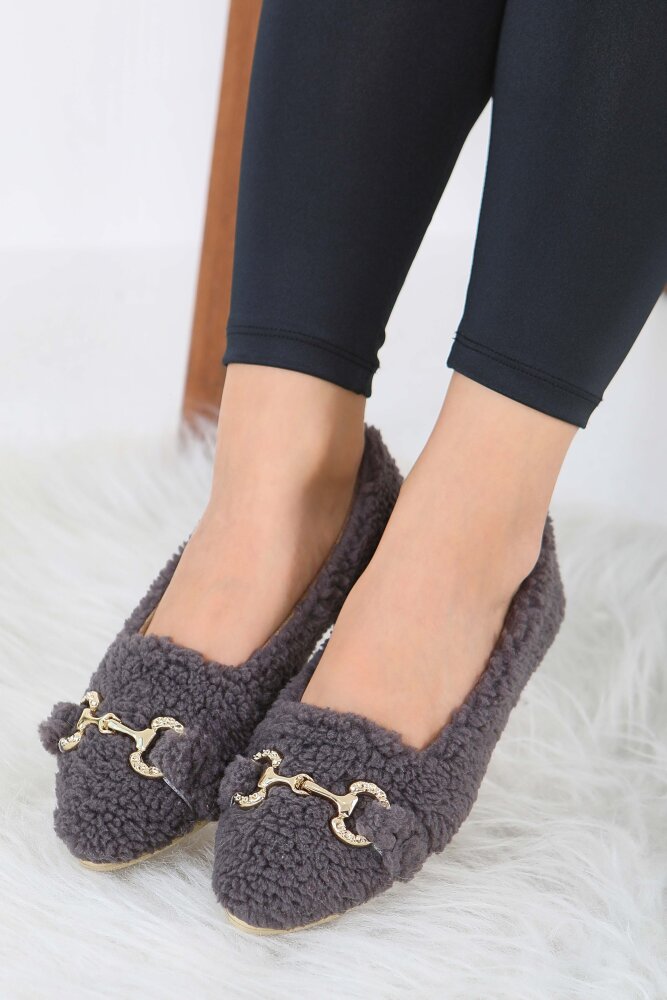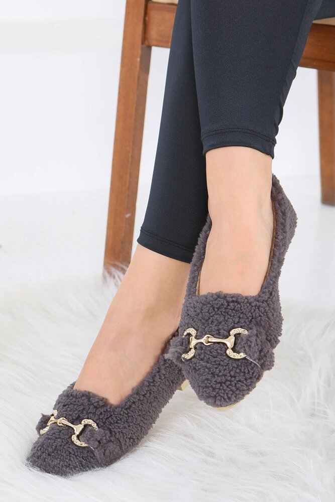 Kadın Antrasit Toka Detaylı Peluş Babet - 27913-ANTRASIT