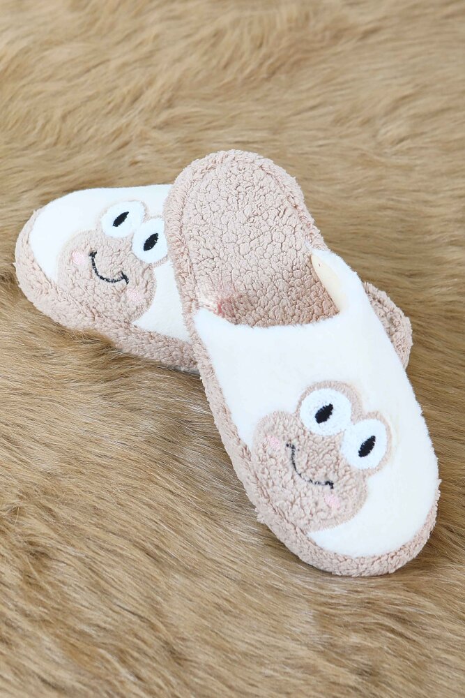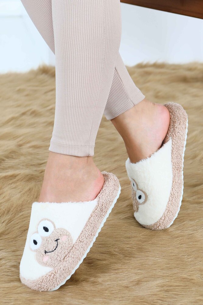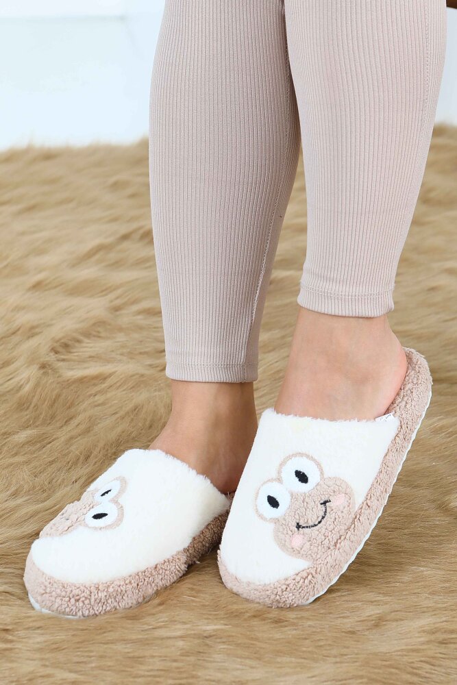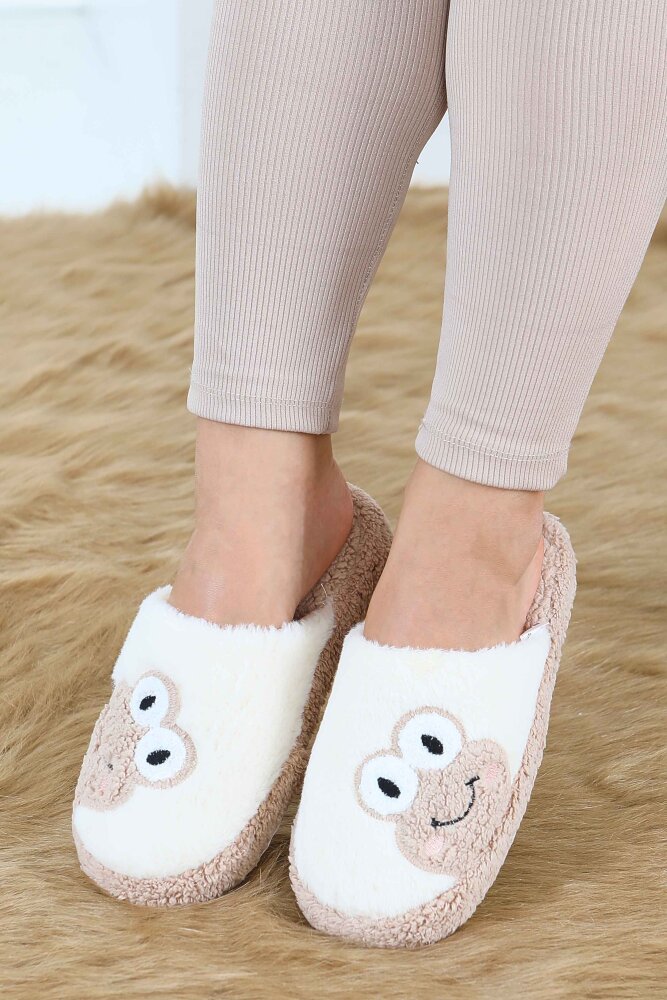 Kadın Bej Kurbağa İşlemeli Ev Terliği - 27779-BEJ