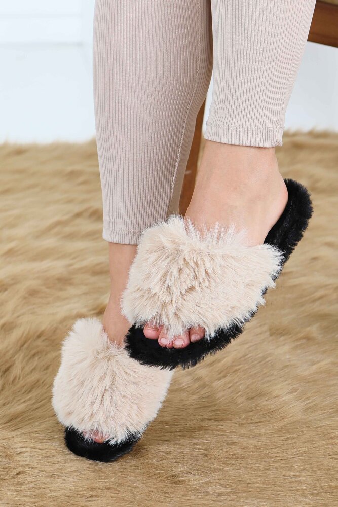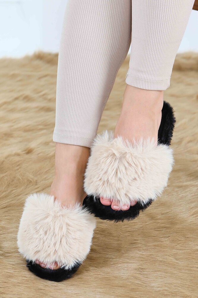 Kadın Bej Ponponlu Ev Terliği - 27782-BEJ
