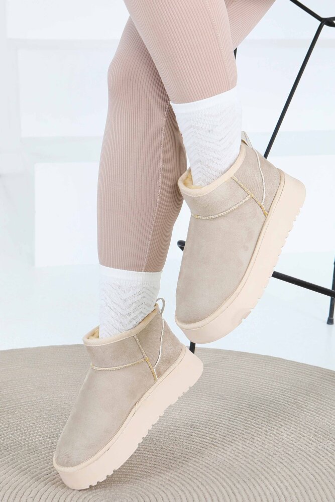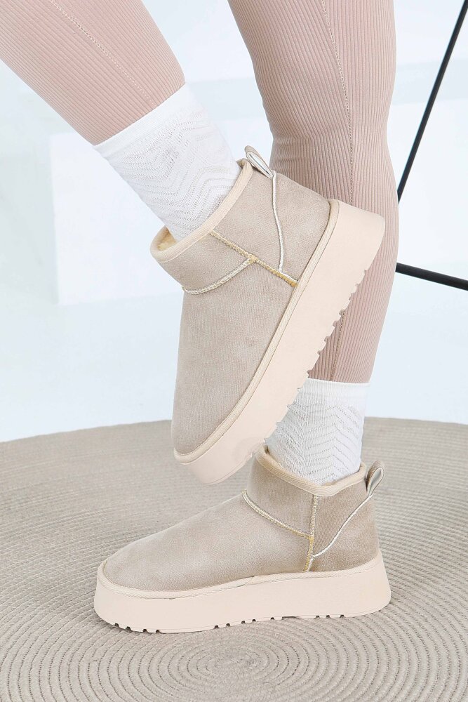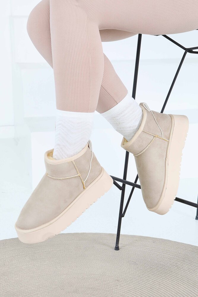 Kadın Bej Yüksek Taban Yarım Süet Bot - 27783-BEJ