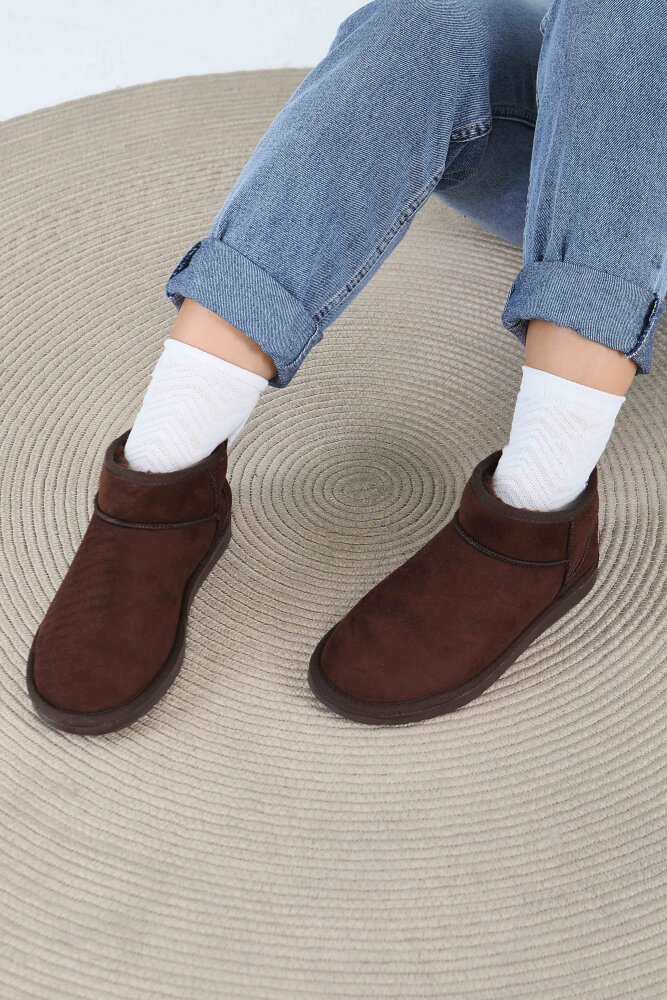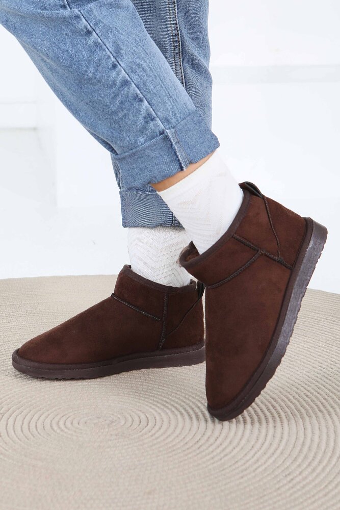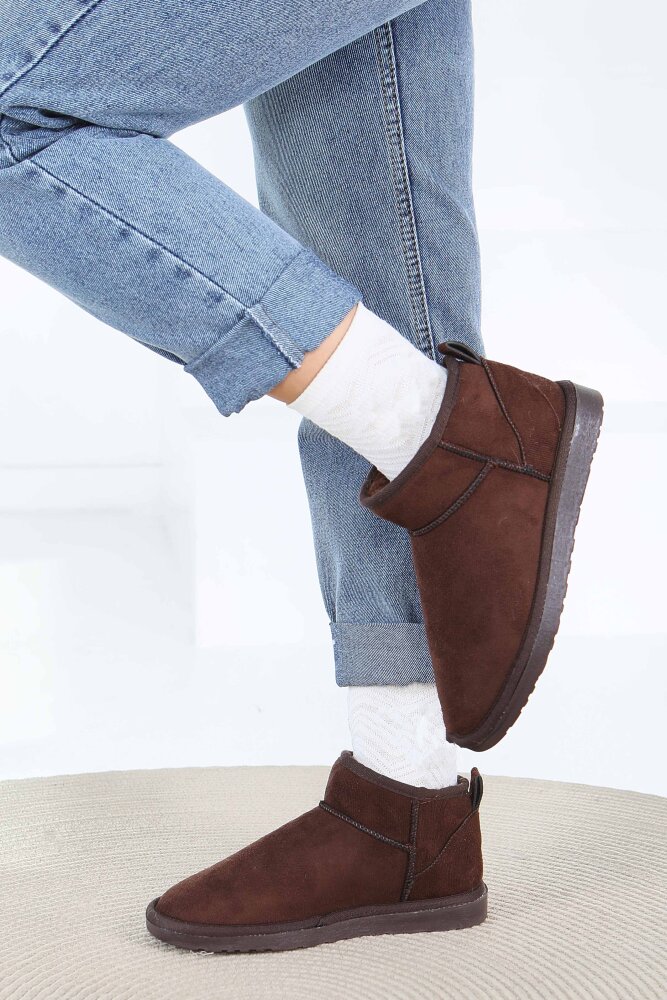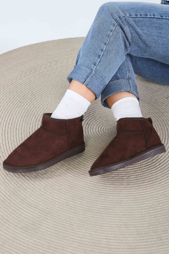 Kadın Kahve İçi Peluş Yarım Süet Bot - 27784-KAHVE