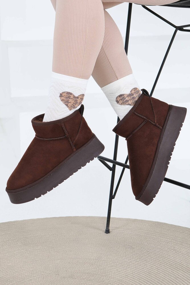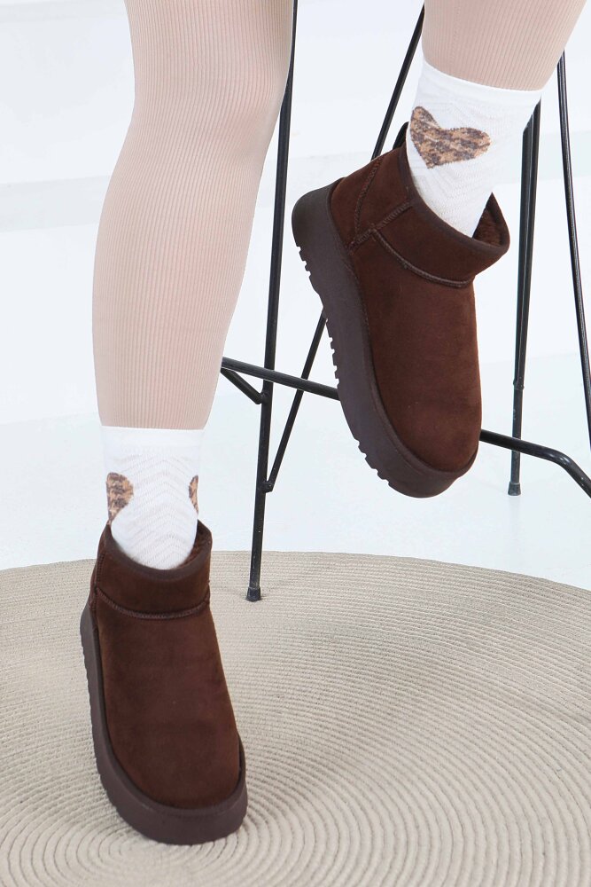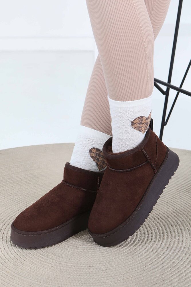 Kadın Kahve Yüksek Taban Yarım Süet Bot - 27783-KAHVE