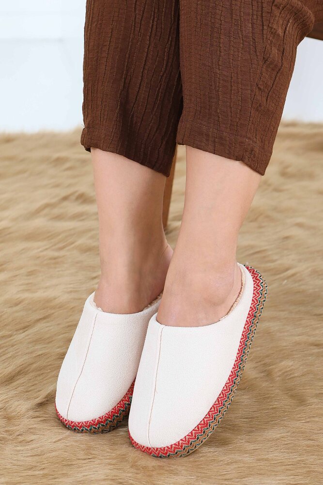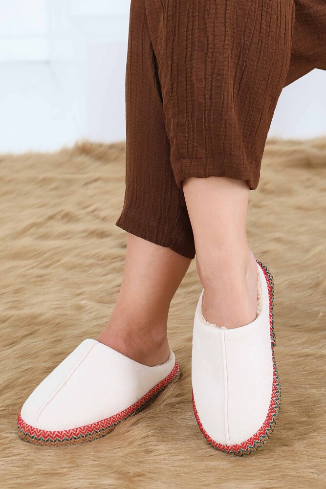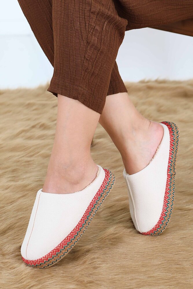 Kadın Krem Yanları Nakışlı Ev Terliği - 27781-KREM