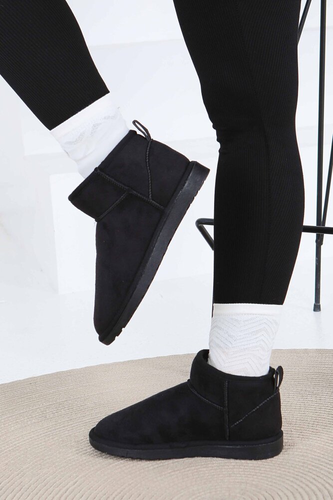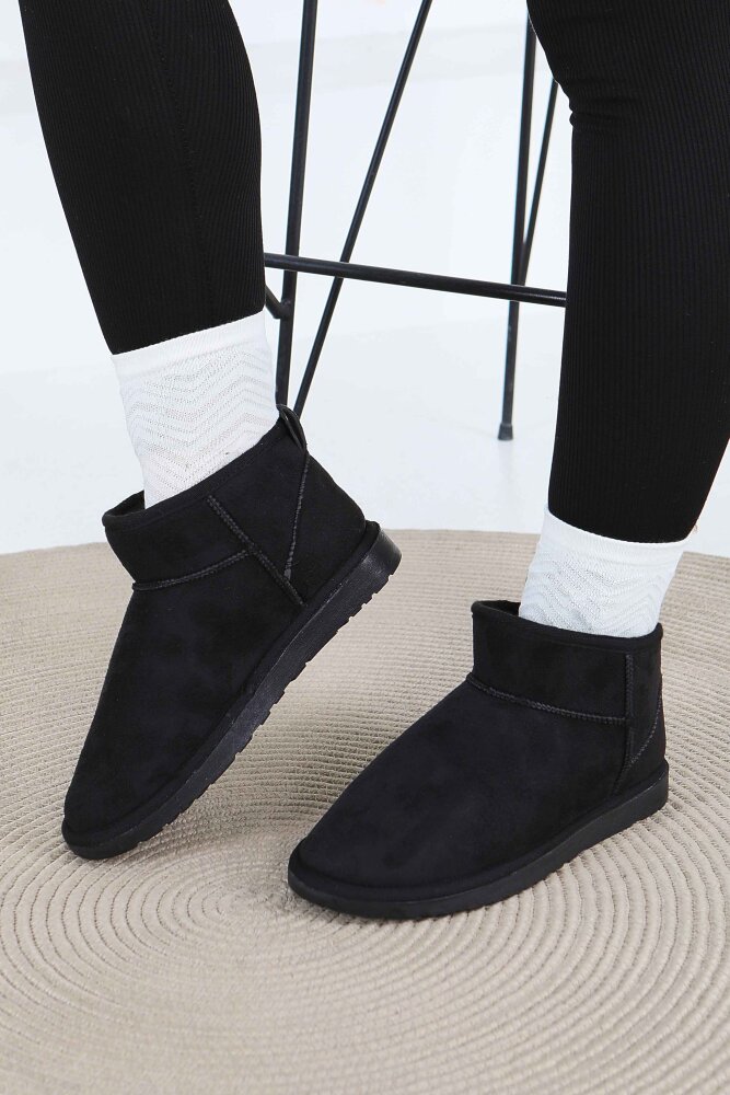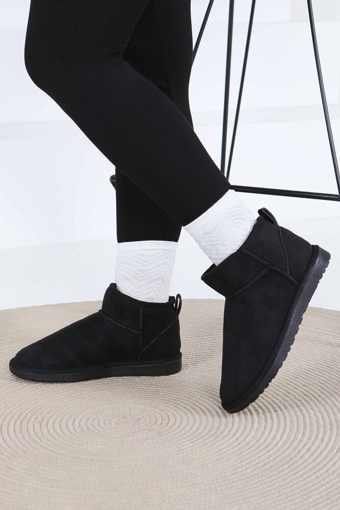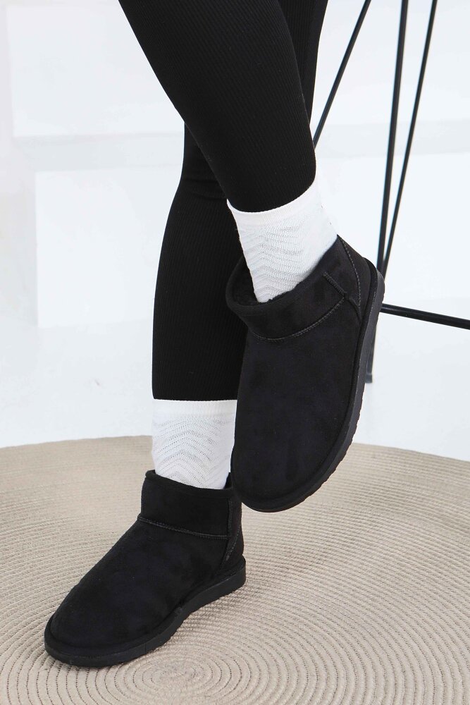 Kadın Siyah İçi Peluş Yarım Süet Bot - 27784-SIYAH