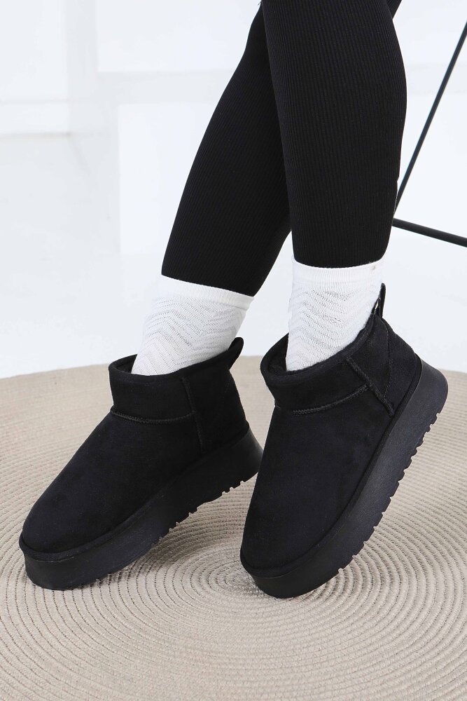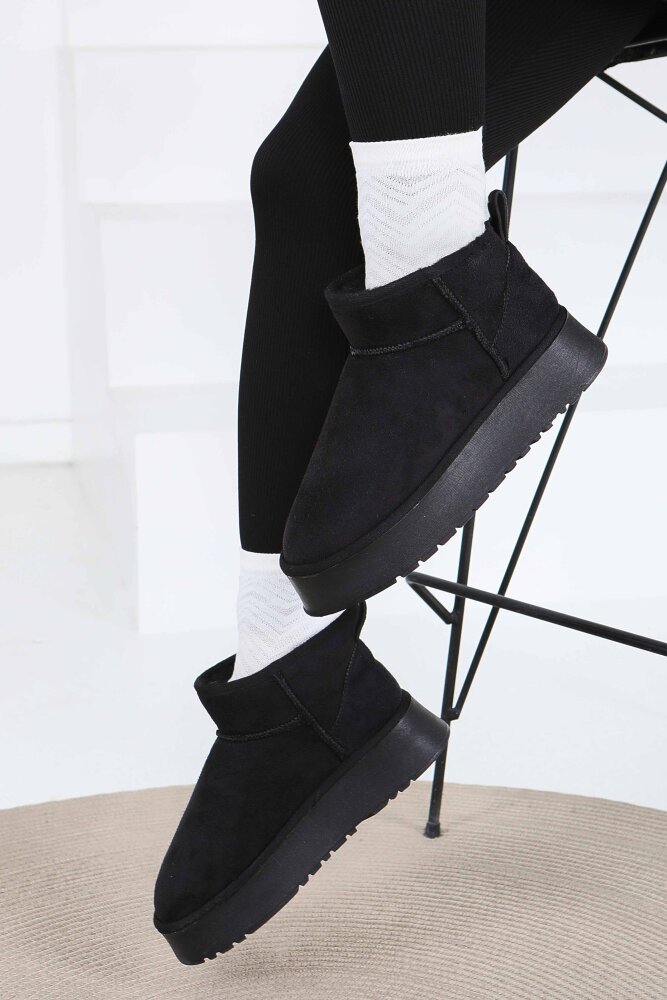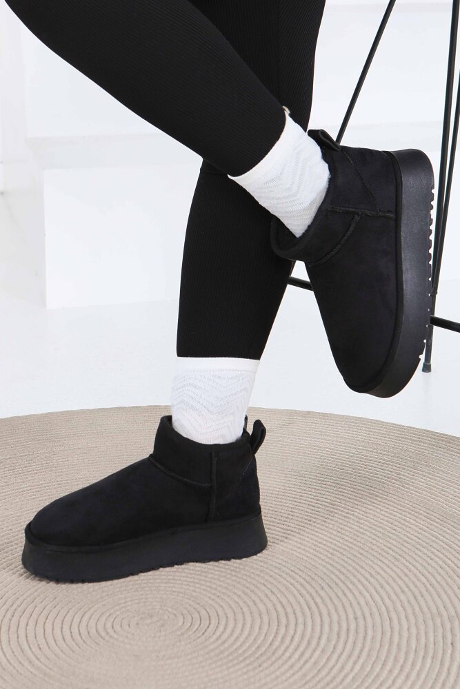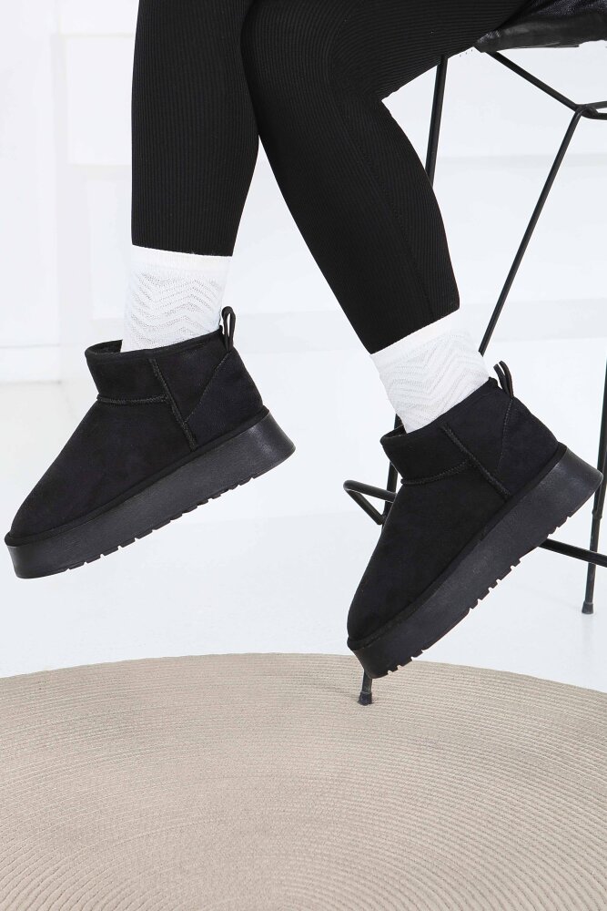 Kadın Siyah Yüksek Taban Yarım Süet Bot - 27783-SIYAH
