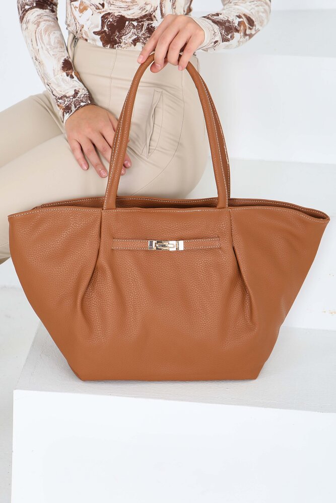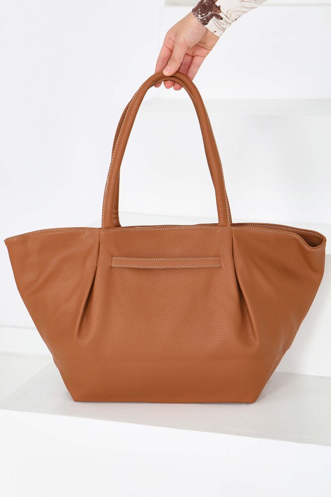 Kadın Taba Geniş Suni Deri Omuz Çantası - 27844-TABA