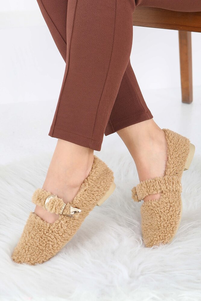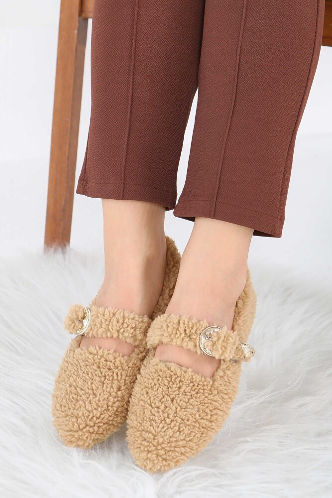 Kadın Vizon Kemer Detaylı Peluş Babet - 27910-VIZON