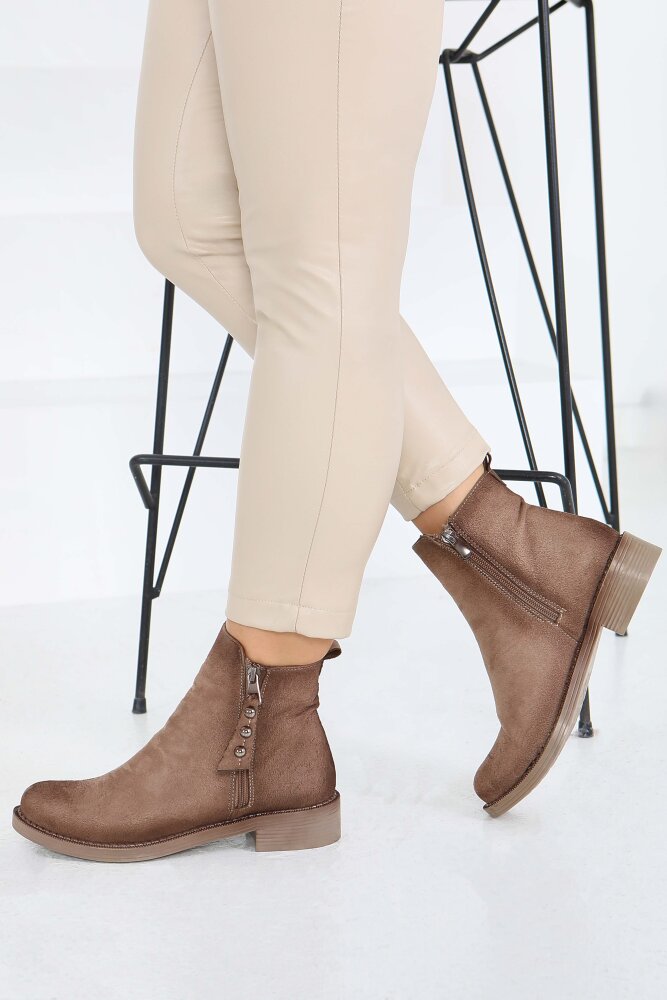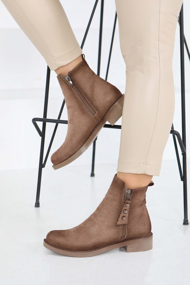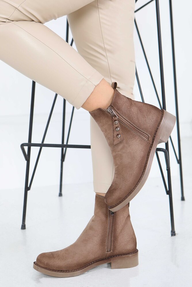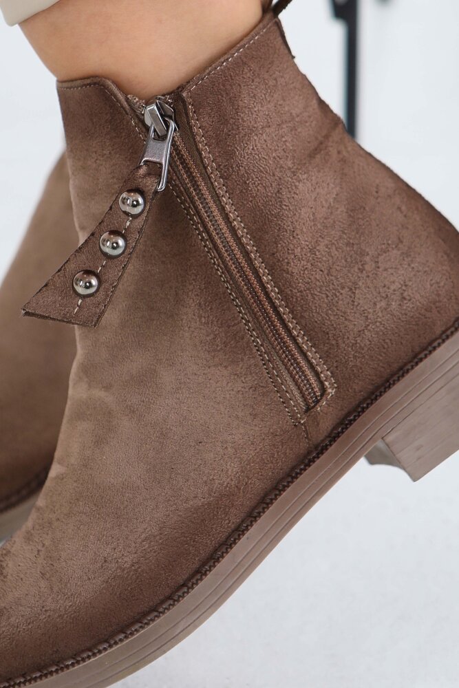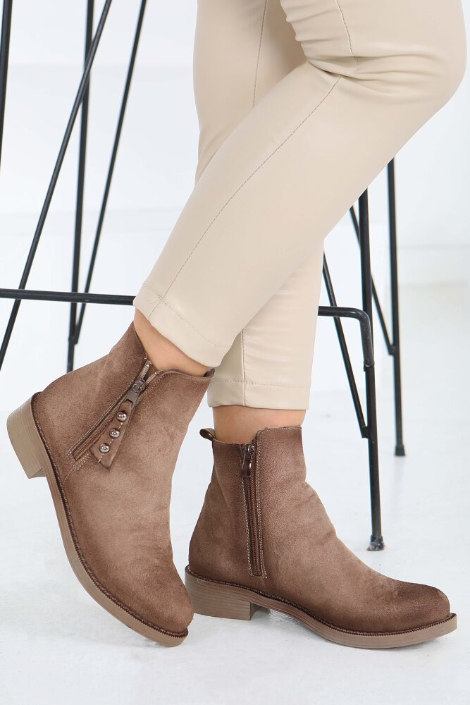 Kadın Vizon Yanları Fermuarlı Süet Bot - 27850-VIZON