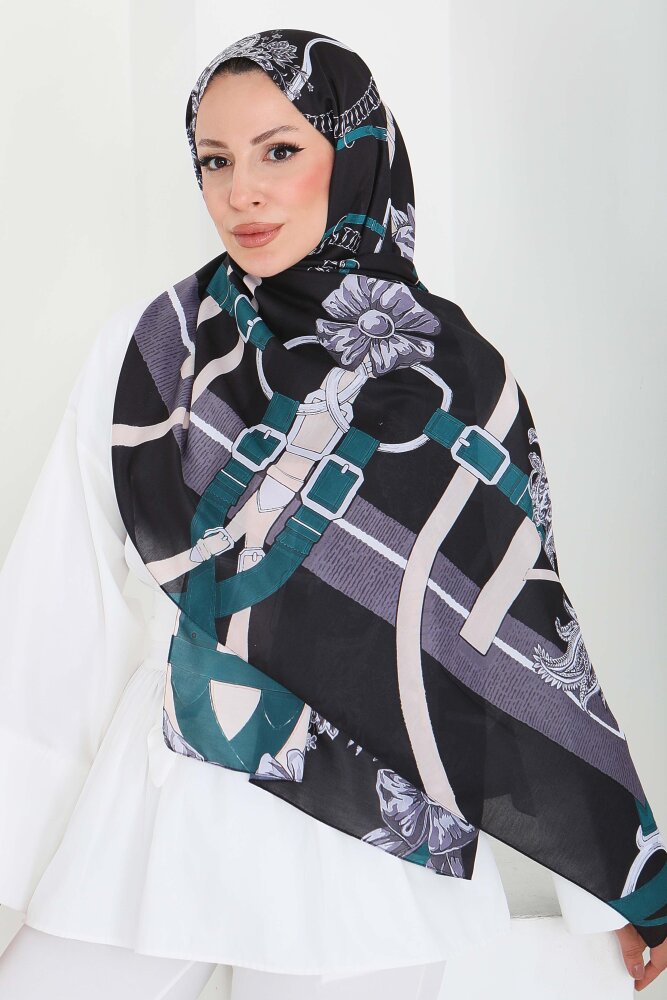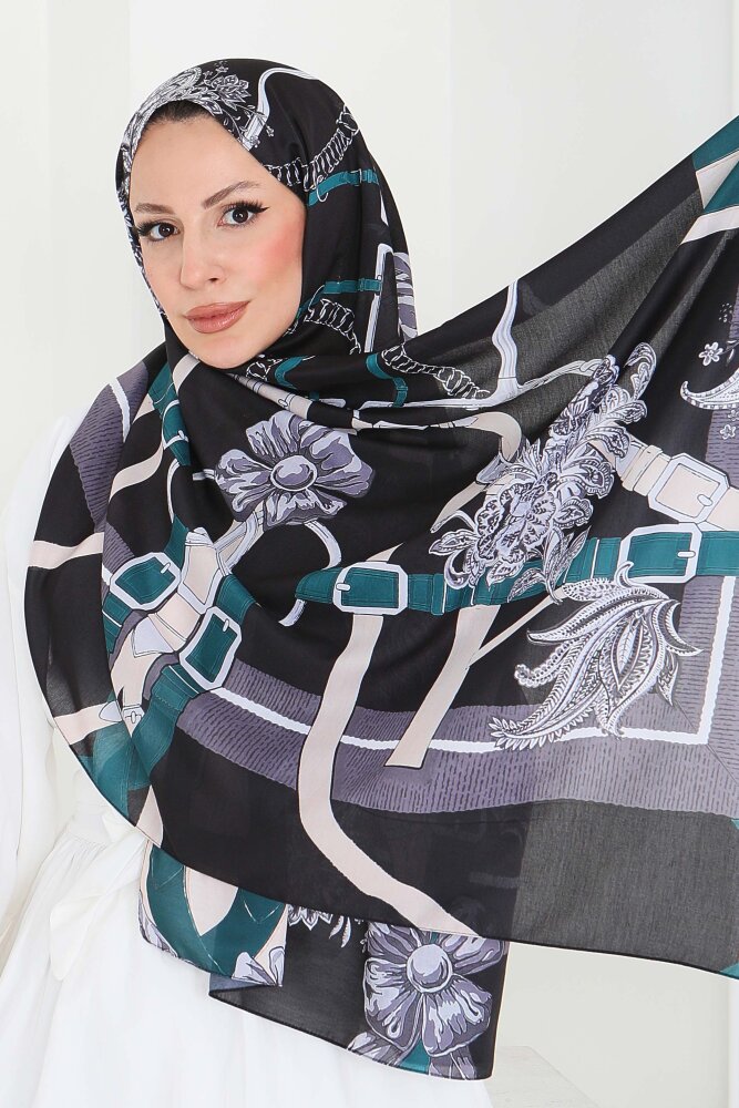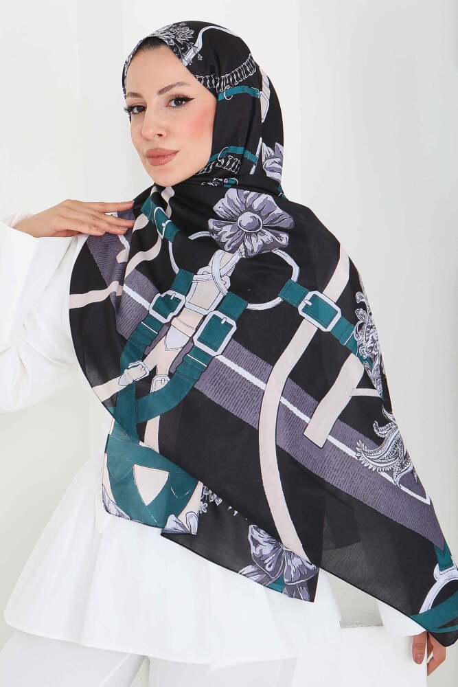 Kemerli Çiçek Bahçesi Serisi Pamuk Şal Petrol - 27858-PETROL
