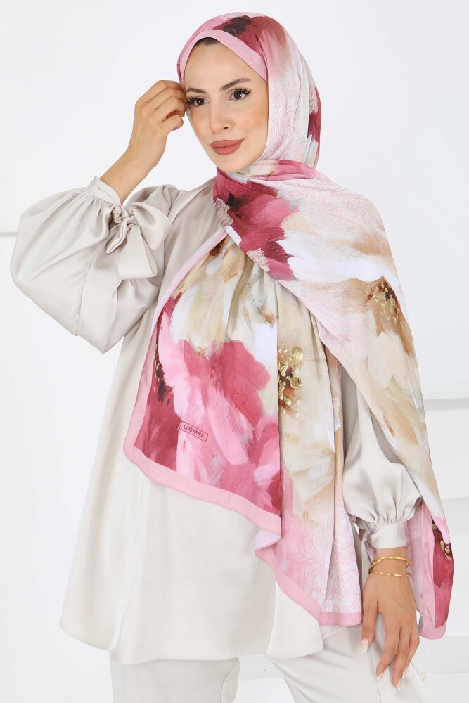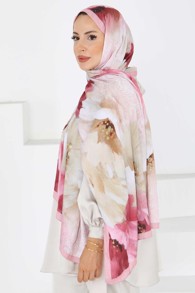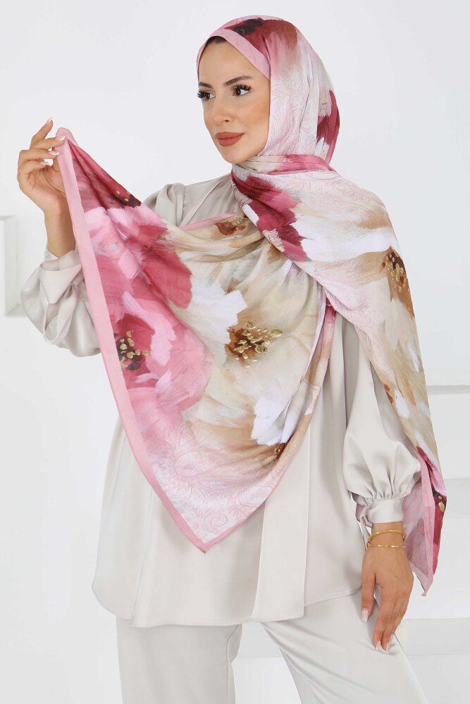 Kıraş Büyük Çiçek Desenli Şal Gül - 27621