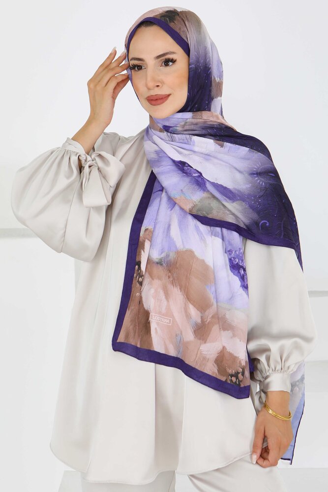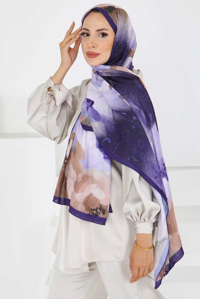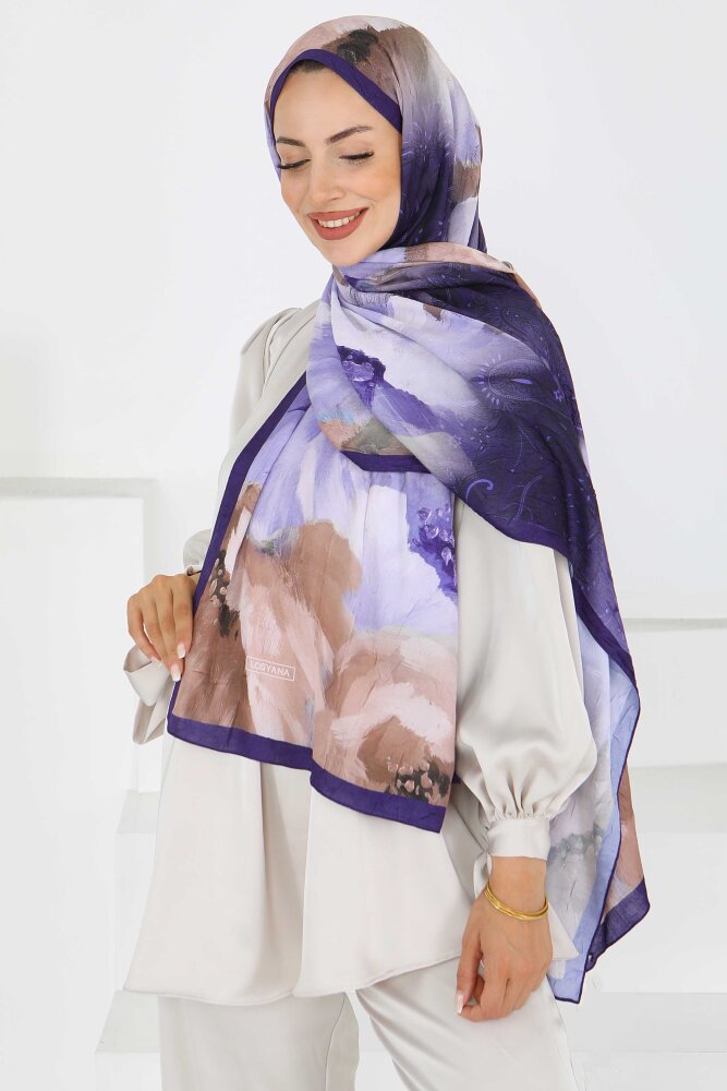 Kıraş Büyük Çiçek Desenli Şal Mor - 27621