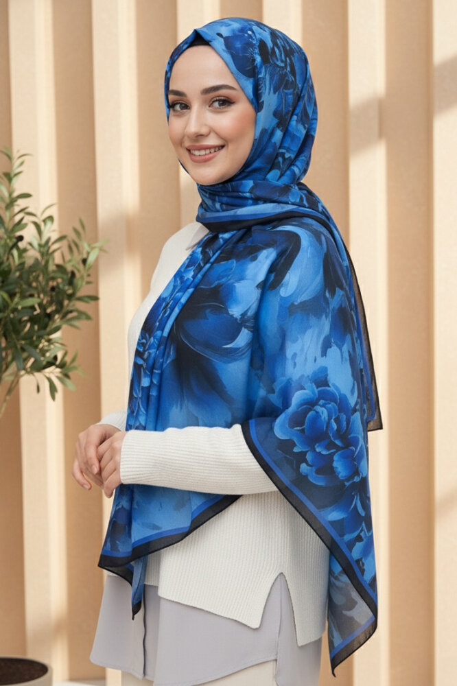 Mystic Flora Serisi Pamuk Şal Saks - 27988-SAKS