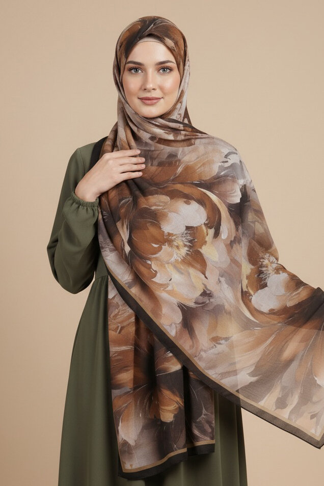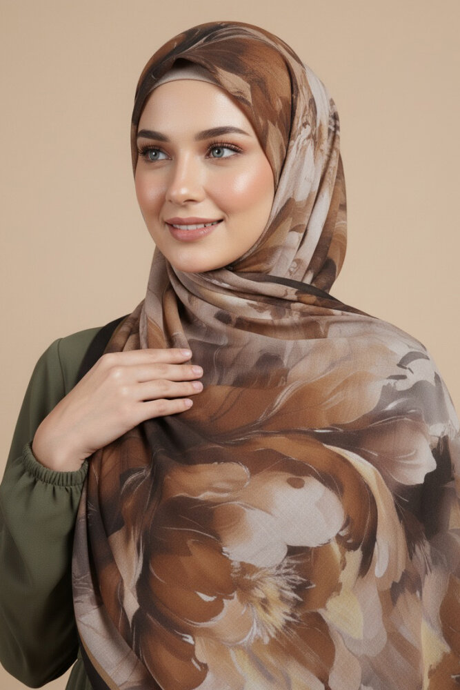 Mystic Flora Serisi Pamuk Şal Vizon - 27988-VIZON