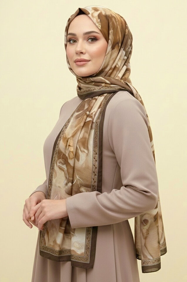 Soft Mist Serisi Pamuk Şal Yağ Yeşili - 27985-YAG-YESILI